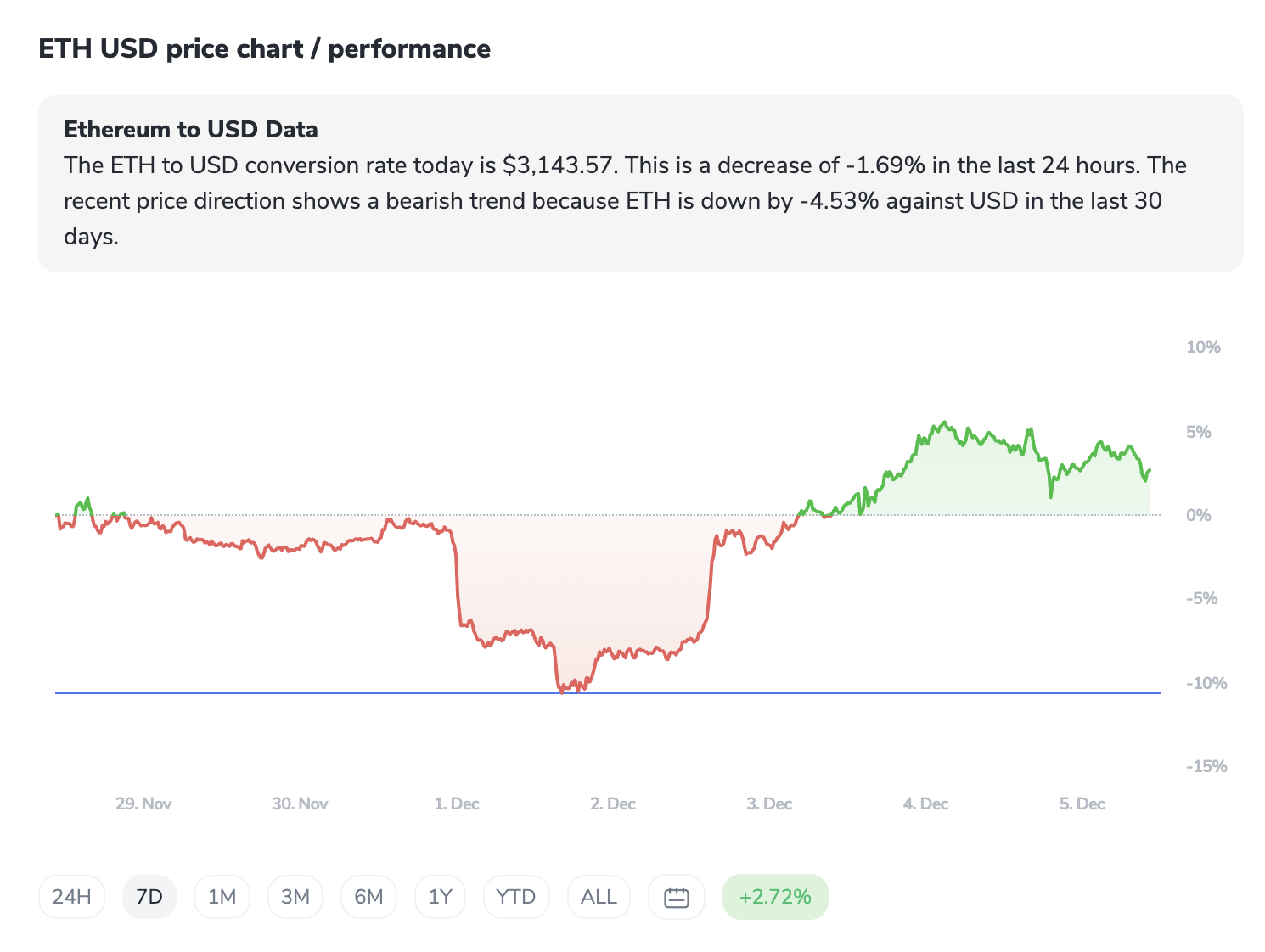 ETH is the fascinating story this week. At $3,115, it’s down today but up 3.7% over the last 7 days. While Bitcoin catches its breath, Ethereum is quietly reclaiming dominance. This is often the first sign of capital rotating from the "Store of Value" leader into the "Utility" platform leader.
