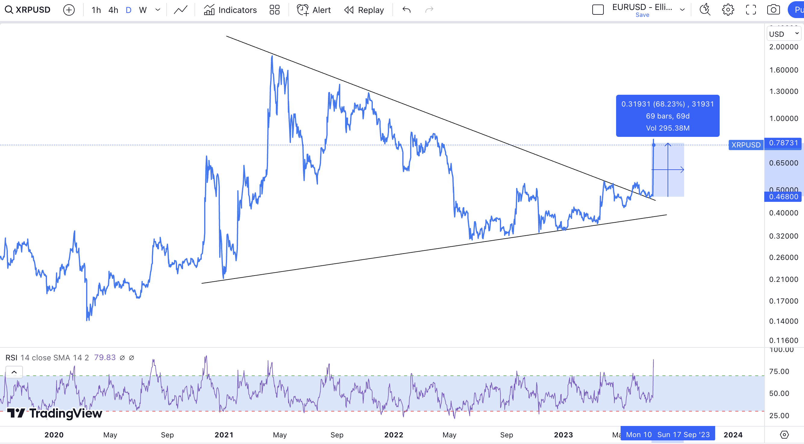 XRP HODLERS have finally been rewarded, with the crypto closing almost 70% higher than it opened yesterday. XRP touched highs of USD 0.945 before marginally retreating to USD 0.7735.