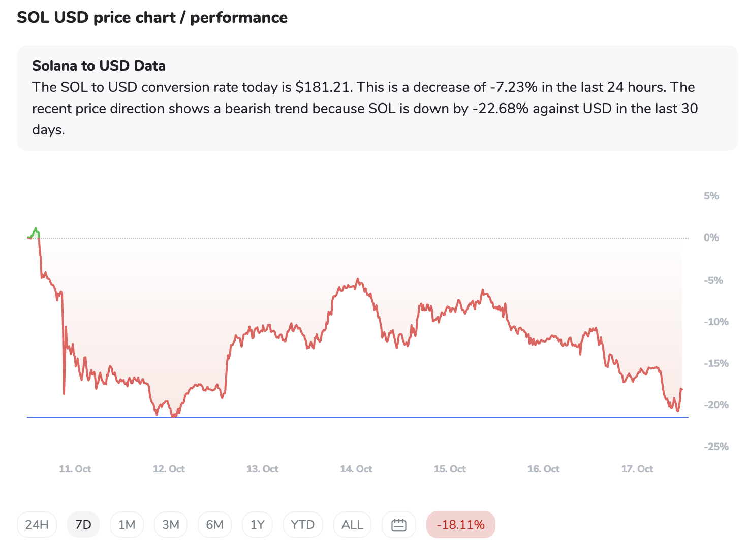 Not to be outdone in the volatility stakes, Solana (SOL) saw the steepest decline among the majors, shedding 8.53% to $179.35.