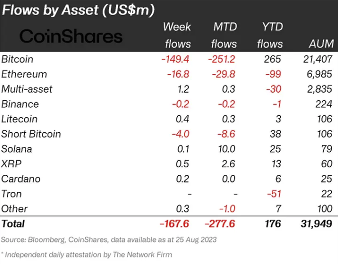 It is worth noting that institutional outflows from short Bitcoin-related investments were -$4 million last week, and -$8.6 million for the month of August. Interestingly, Ethereum has seen a sustained withdrawal of institutional liquidity, with outflows of -$16.8M last week, -$29.8M in August, and -$99M YTD.