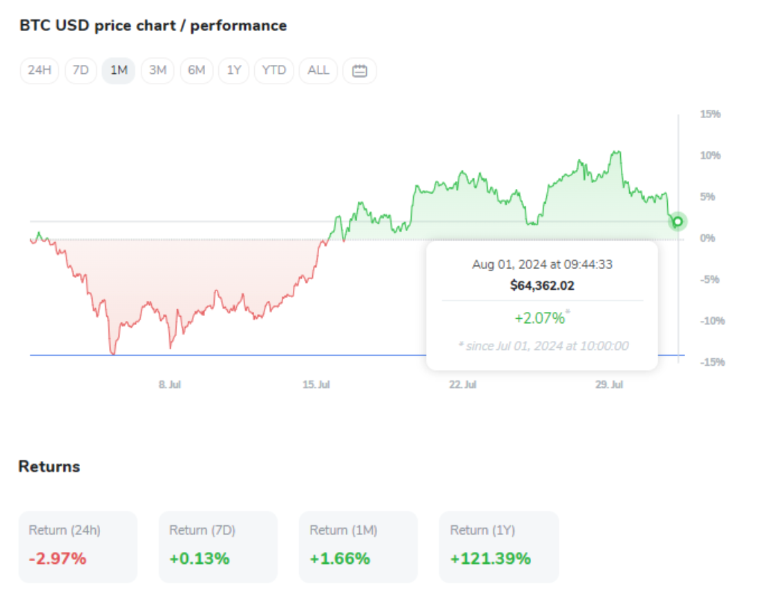 Bitcoin (BTC) has experienced notable volatility, with its price dropping to $64,348. This decline might be influenced by the US Federal Reserve's decision to keep interest rates unchanged at 5.3% and geopolitical tensions in the Middle East. Fed Chair Jerome Powell suggested that a rate cut "could be on the table" in the near future, depending on further economic indicators. This nuanced stance has left traders on edge, influencing Bitcoin's price movements.