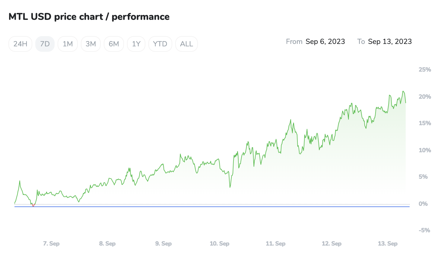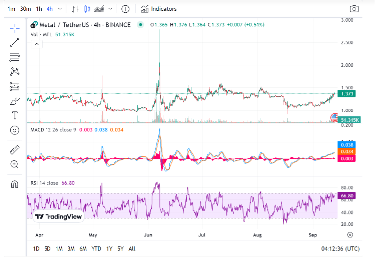 Turning to the technical analysis of Metal (MTL), the coin's price movement has been intriguing. Since November 2022, MTL has been on an upward trajectory, with a notable price surge on August 17th that initiated an upward trend.