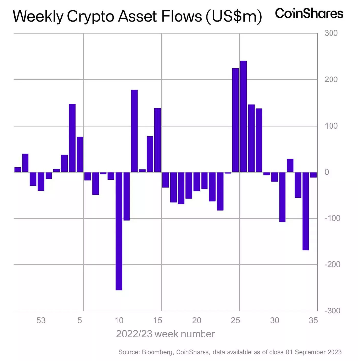 Interestingly, despite the negative market conditions, Solana saw inflows for the 9th consecutive week totalling US$0.7m. Solana has seen the highest institutional inflows this year behind Bitcoin and has emerged as a standout performer, attracting significant year-to-date (YTD) inflows of $26 million since the beginning of the year.
