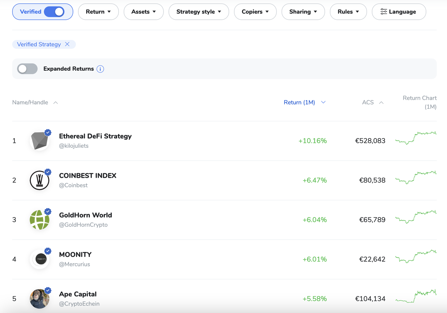 Ethereal DeFi Strategy has been a stand-out performer over the past month, despite the sharp decline in BTC over the past 24 hours from 31,450 to 30,000. Ethereal DeFi Strategy has provided its investors with a +10.16% ROI. All of the top 5 strategies on the ICONOMI platform have recorded gains of above 5% ROI.