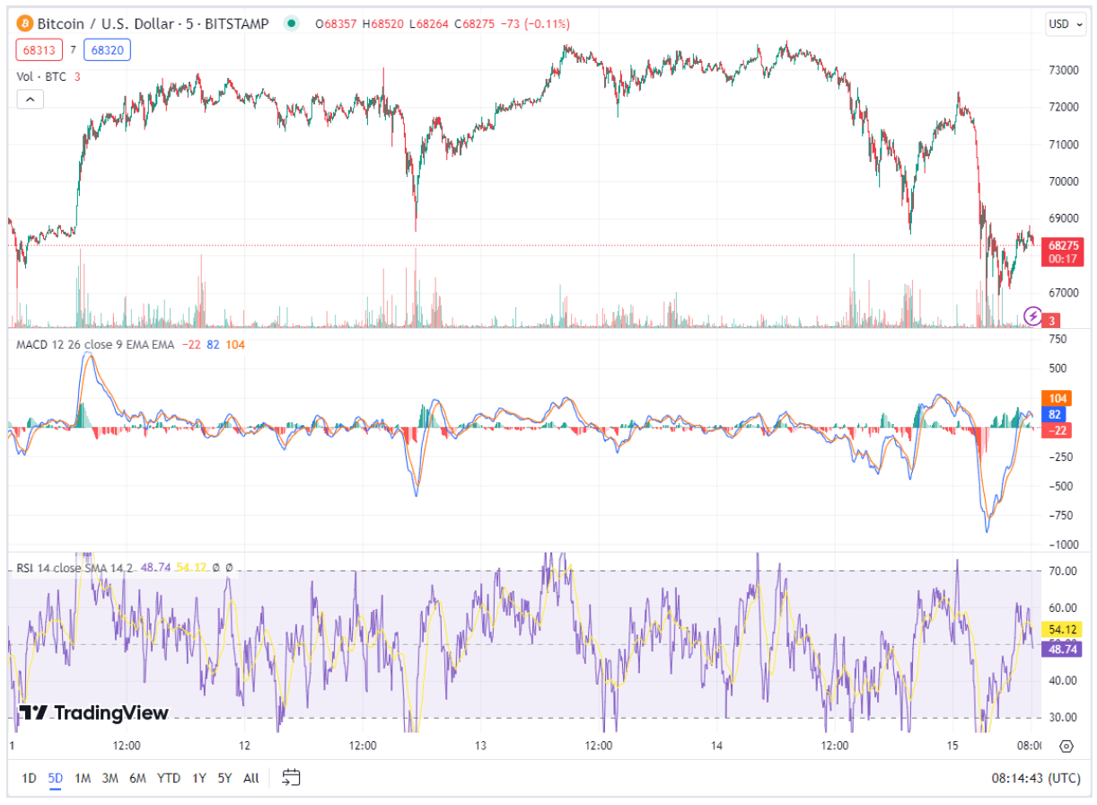 Overall, the technical stance for Bitcoin remains cautiously optimistic, with traders closely monitoring key support and resistance levels for potential breakout opportunities. While the recent surge in price has fuelled bullish sentiment, maintaining momentum above key resistance levels will be essential for sustaining upward momentum in the near term.