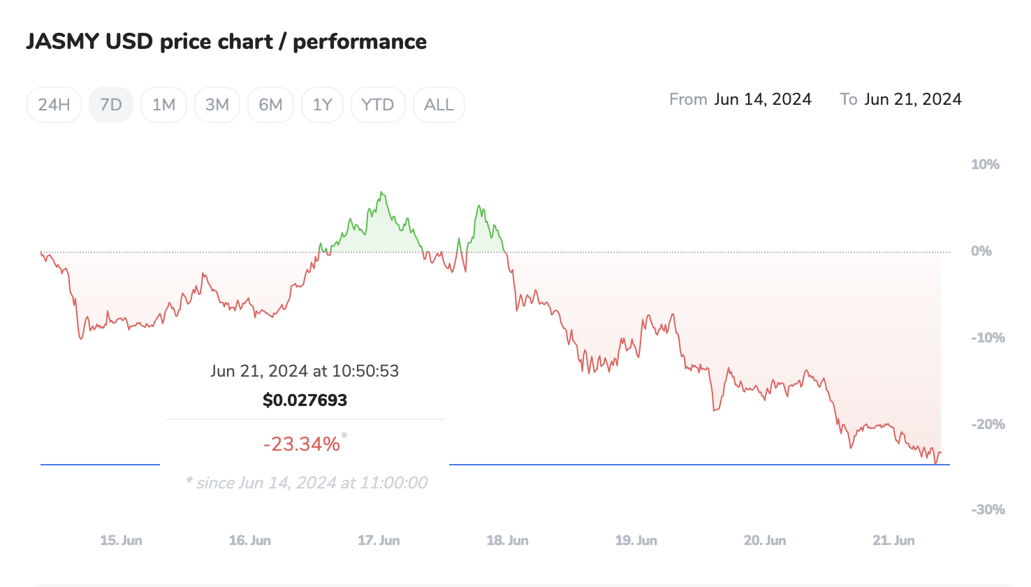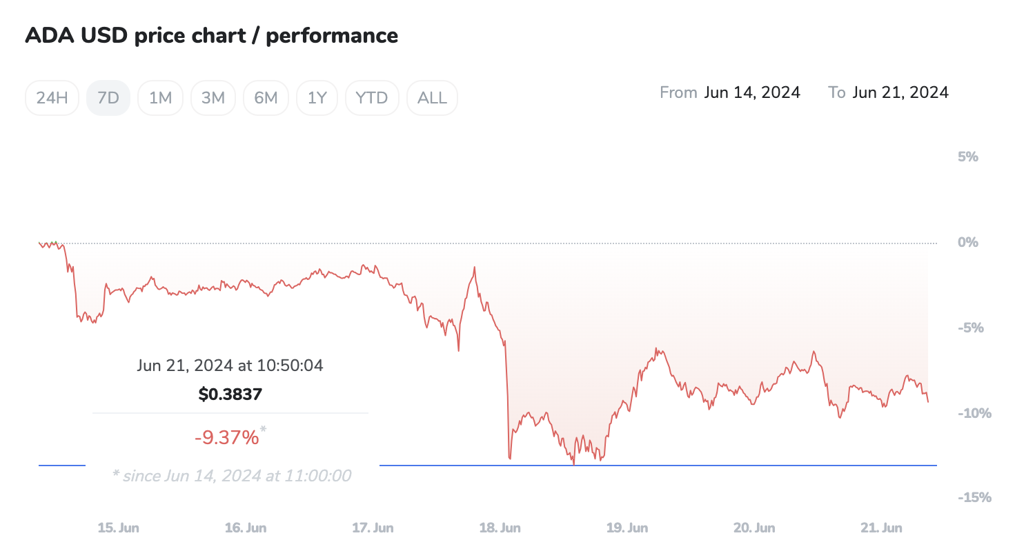 Jasmy experienced a significant price increase of 75% between late May and early June, but the subsequent bearish divergence in the Relative Strength Index (RSI) suggests a potential price correction. Similarly, Cardano (ADA) has seen considerable volatility, with its price fluctuating over the past year. Despite a recent dip, favourable developments in the Cardano ecosystem have bolstered ADA's position.