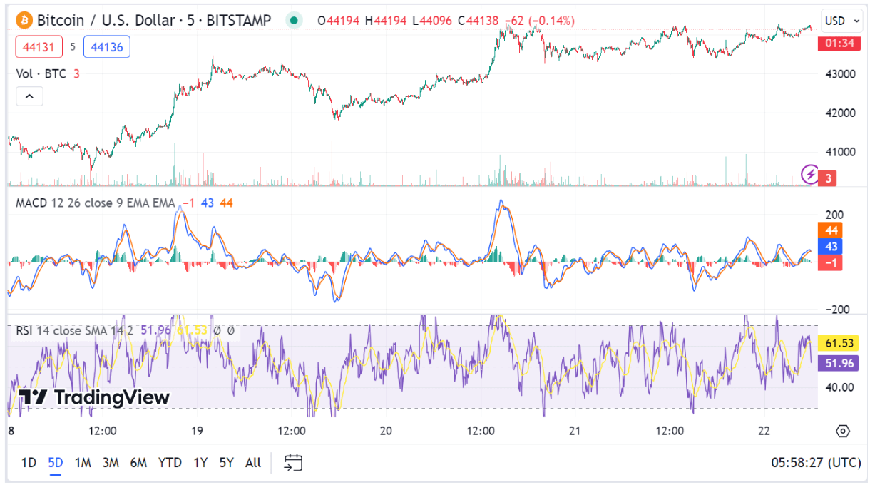 The anticipation of the SEC's potential approval of spot Bitcoin ETFs has driven Bitcoin's price to $44,200, marking a 1.50% increase in the last 24 hours. This surge may be attributed to the persuasive impact of ETF filings, intensifying marketing campaigns within the crypto sector. Notably, market dynamics are influenced by institutional players intensifying their marketing strategies ahead of potential listings. The industry's focus on being the first to market is evident, drawing increased investor attention and impacting Bitcoin's price based on market sentiment and perceived institutional support.
