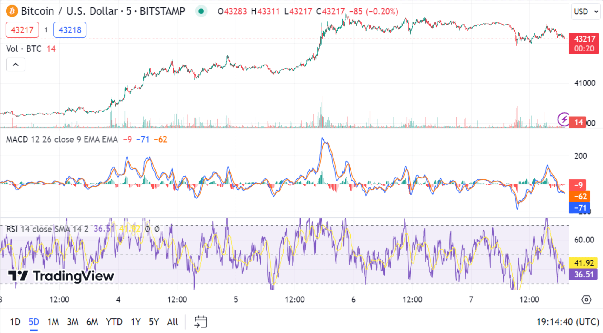 Technical analysis indicates an uptrend within an ascending channel, with resistance levels at $45,000 and $46,000. While caution is advised due to overbought conditions, support levels at $42,000 and $41,000 provide safety nets for potential retracements.